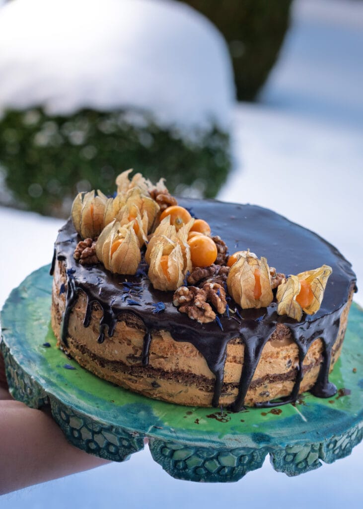 Viktoria tort, milles on rikkalikult pähkleid ja rosinaid ning tibake konjakit.
