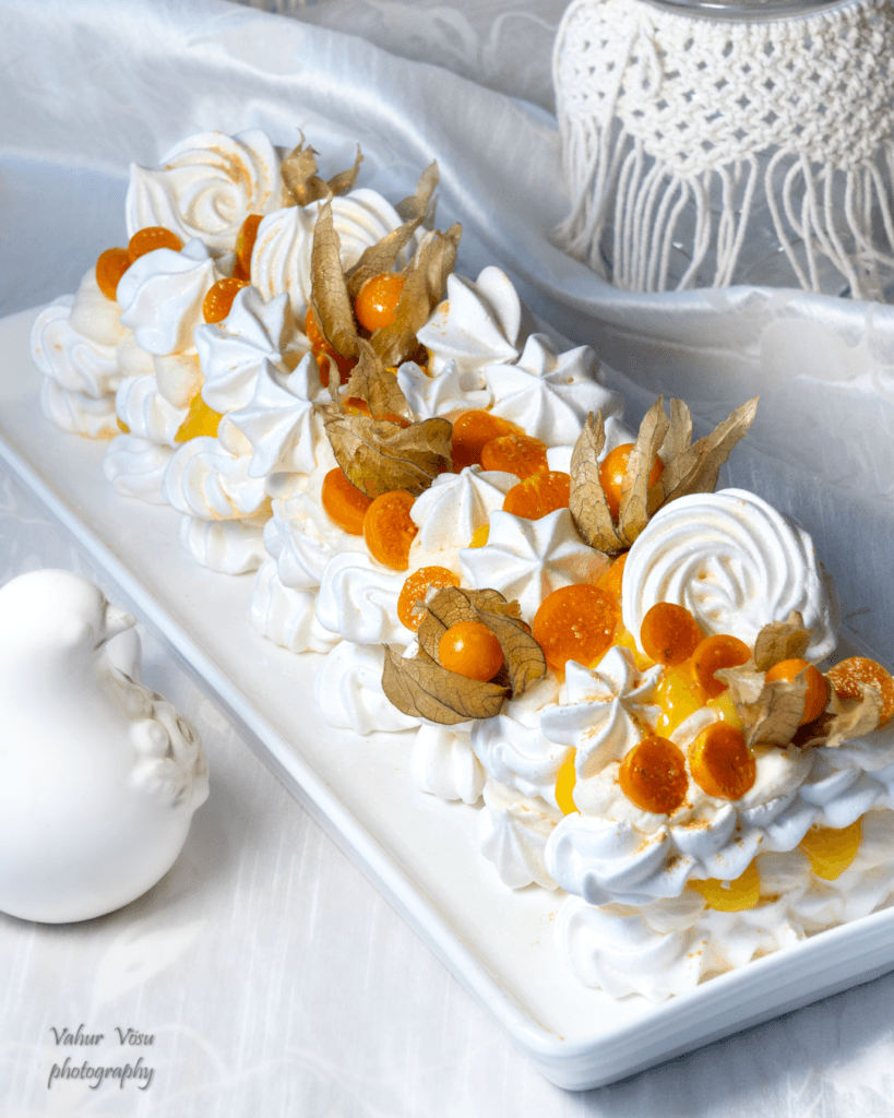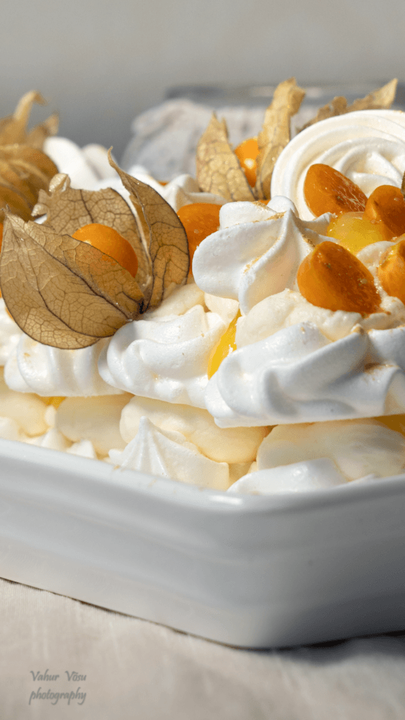 Beseekoogid sidrunivõide, vahukoore ja limoncellos leotatud füüsalitega