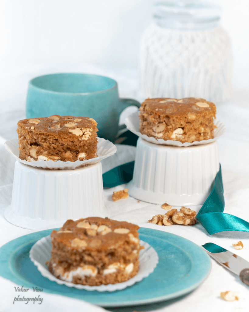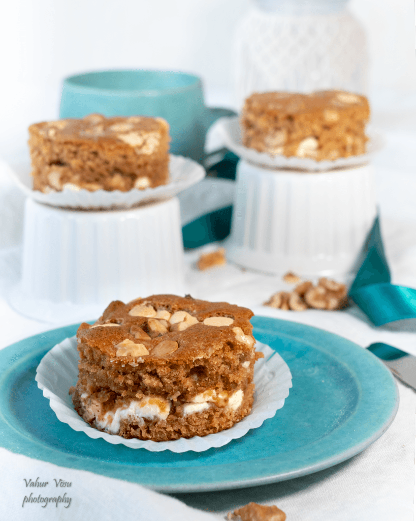 Blondie karamelli, valge šokolaadi ja kreeka pähklitega
