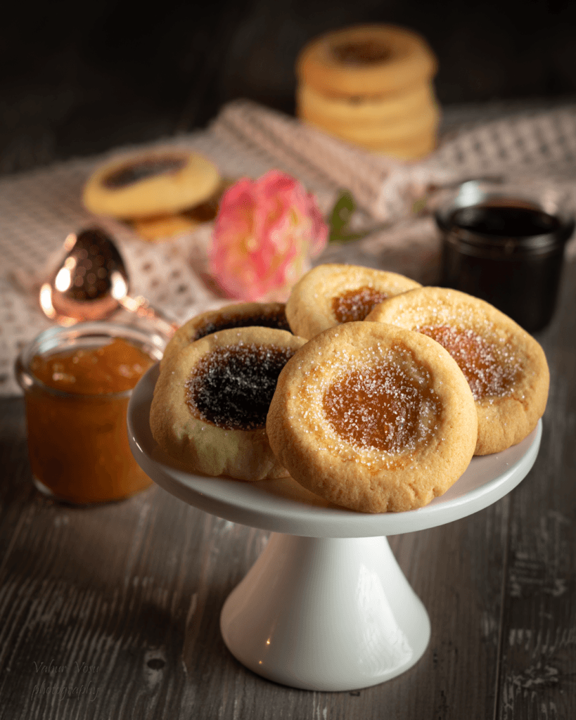 Vormi taignast 20 g kaaluvad pallikesed ning aseta need piisavate vahedega küpsetuspaberiga kaetud ahjupannile (vahe ca 6-7 cm) ning vajuta pallikese keskele pöidlaga lohuke kuhu mahuta ca 0,5 tl kmoosi.