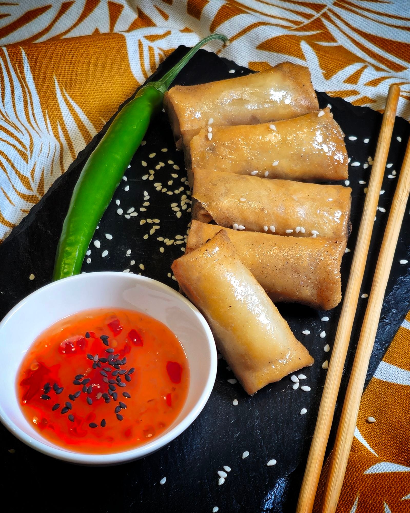 Mõnus eelroog või lihtsalt vahepala, kui soovid midagi kergelt vürtsikat ja maitsvat. Sellest kogusest saab umbes 20 kevadrulli Koostisosad: 300 g delikatess seahakkliha 1 tl