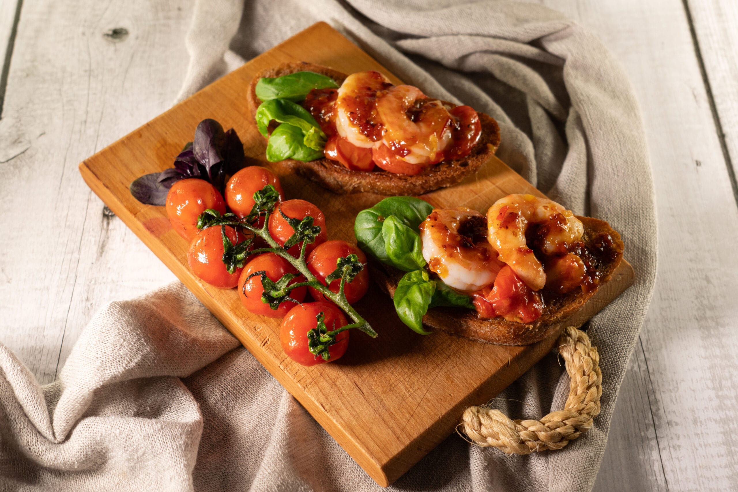 Suvine eelroog või väike amps suveõhtusse. Valmib kiirelt ja on maitselt kergelt magus ja vürtsikas. Retsept kahele Vaja läheb: 4 Ciabatta – viilu
