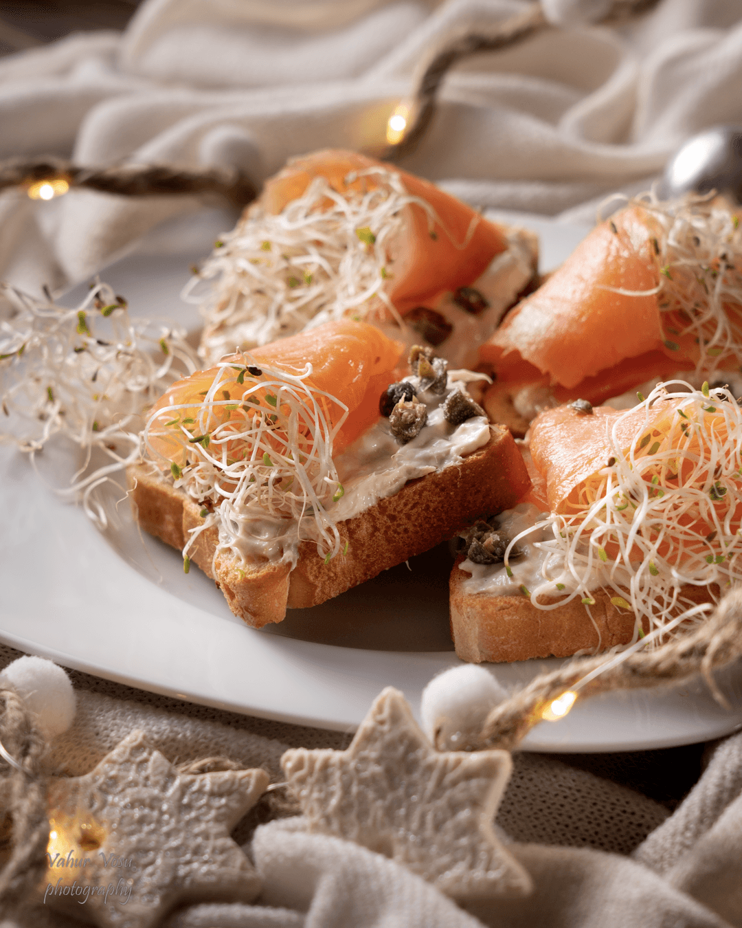 Kogus: 8 suupistet Vaja läheb: 8 tk mini röstsaiaviilu 100 g külmsuitsulõhet 50 g majonees 100 g tuunikala konservi vees (nõrutatud) 100 g toorjuustu Kaunistamiseks: