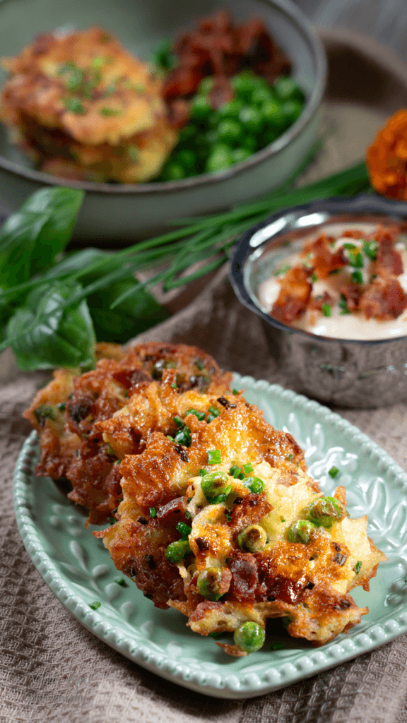 Mõnusad krõbedad koogid, mida sobib hästi serveerida nii hommiku- kui õhtusöögiks. Magusa maitsenüansi annavad roale rohelised herned ja kergelt soolaka varjundi krõbedaks praetud toorsuitsusink.