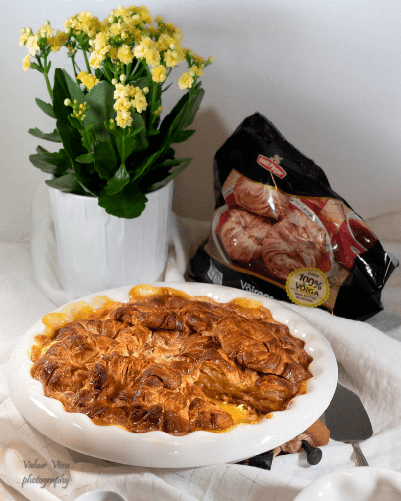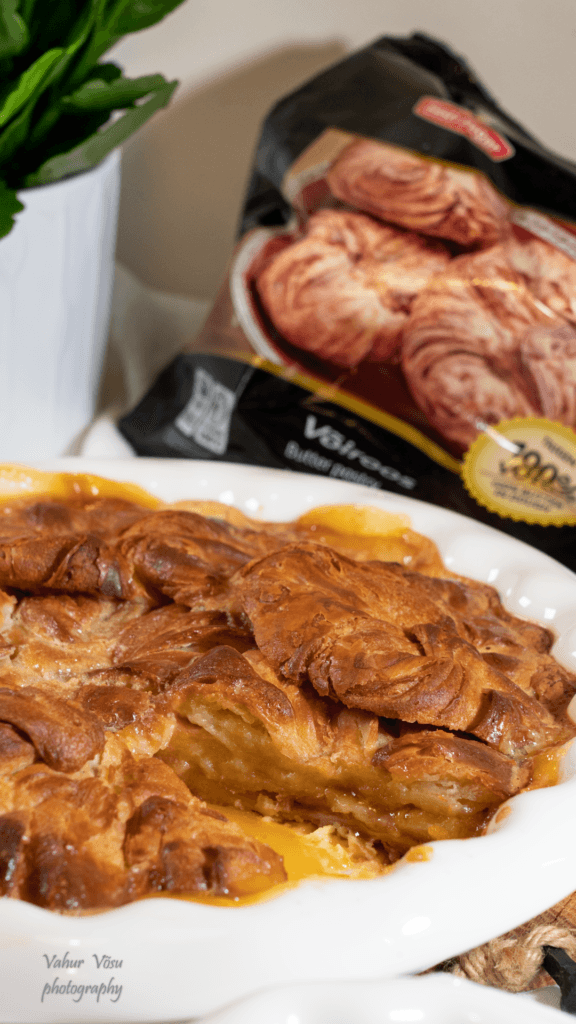 Kuidas teha eriti krõbedat saiavormi? Selleks läheb vaja Eesti Pagari külmutatud võisaiu, vanillikastet ja aprikoosimoosi ning imeliselt maitsev magustoit ongi garanteeritud.