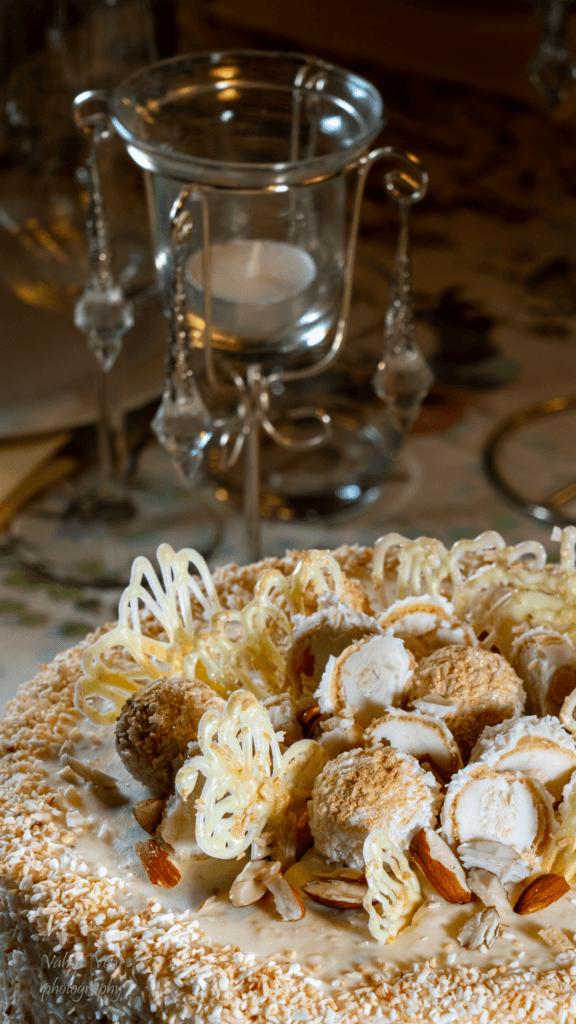Vahusta munad suhkruga tugevaks vahuks. Sega omavahel nisujahu, mandlijahu ning sool. Lisa saadud segu munavahule ning sega ettevatlikult üühtlaseks taignaks. Jaga saadud segu võrdselt kolme koogivormi vahel (20 cm läbimõõduga). Vooderda iga koogivormi põhi küpsetuspaberiga, et saaksid tordipõhjad ilusti koogivormidest kätte.