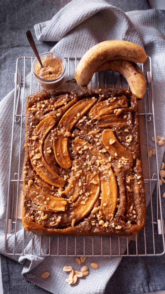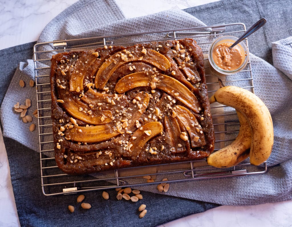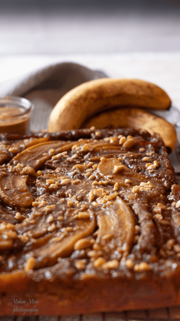Maapähklikreem ja banaanid on üks mõnus kooslus, mis sobivad omavahel imeliselt. Jagan teiega retsepti tagurpidi küpsetatud karamellisest banaanikoogist.