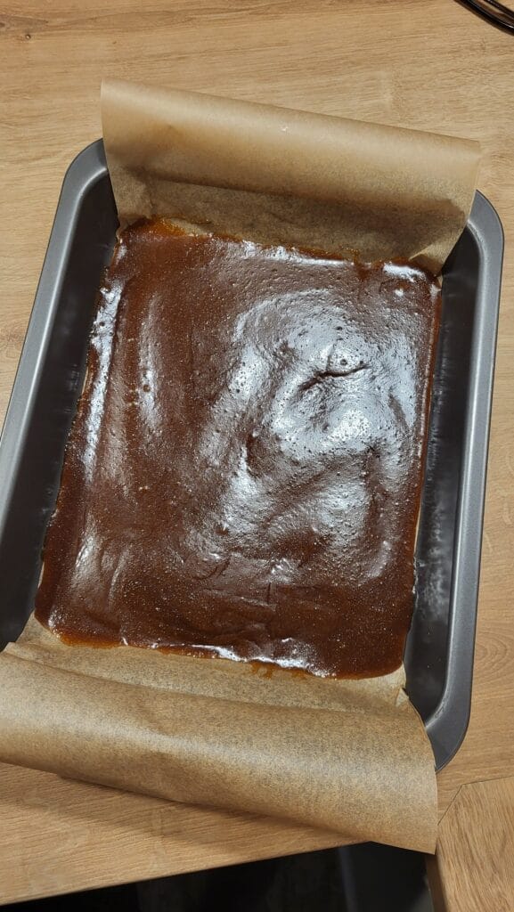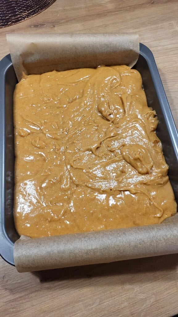 Kuumuta ahi 175 C juurde ning vooderda ahjuvormi põhi küpsetuspaberiga (suurus 22×28 cm) nii, et küpsetuspaberi servad ulatuksid kahelt küljelt pikalt üle koogivormi servade (need pikad küpsetuspaberi servad on pärast abiks koogi vormist kätte saamisel).