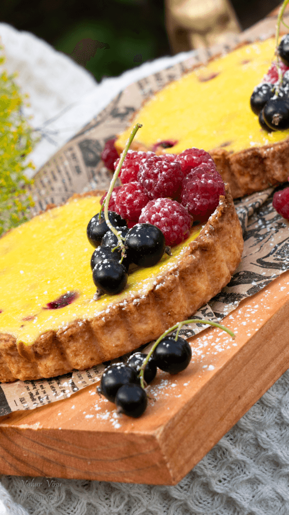 Näpi külm või koos suhkru, soola, jahu ja küpsetuspulbriga ühtlaseks puruks. Lisa muna ja vajuta taigen kokku palliks. Ära teda palju sõtku, taigen ei tohiks palju soojeneda ( st. võimalikult vähe). Jaga taigen nelja ossa ning võta 4 väikest lahtikäiva põhjaga küpsetusvormi (läbimõõt ca 12 cm). rulli taigen ühtlaseks ning täida lahtirullitud taignaga küpsetusvormid. Pane taignaga täidetud vormid külmkappi ca 1 tunniks nii, et või uuesti taheneks.