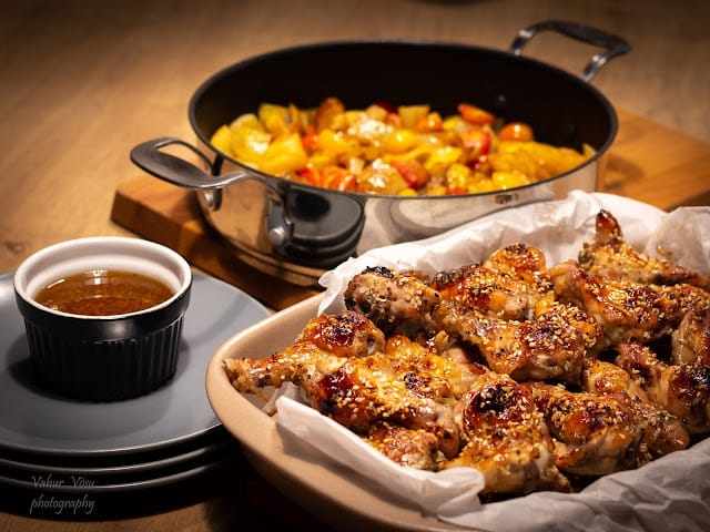 Mõnus ja kiire õhtusöök. Maitseb nagu Hiina toidu restoranis 😊Kana:600 g kanafileed0,5 tl soola0,5 tl küüslaugugraanuleidmusta pipart4 sl vettMeekaste:10 spl ketšupit5 spl magusat tšillikastet3 spl