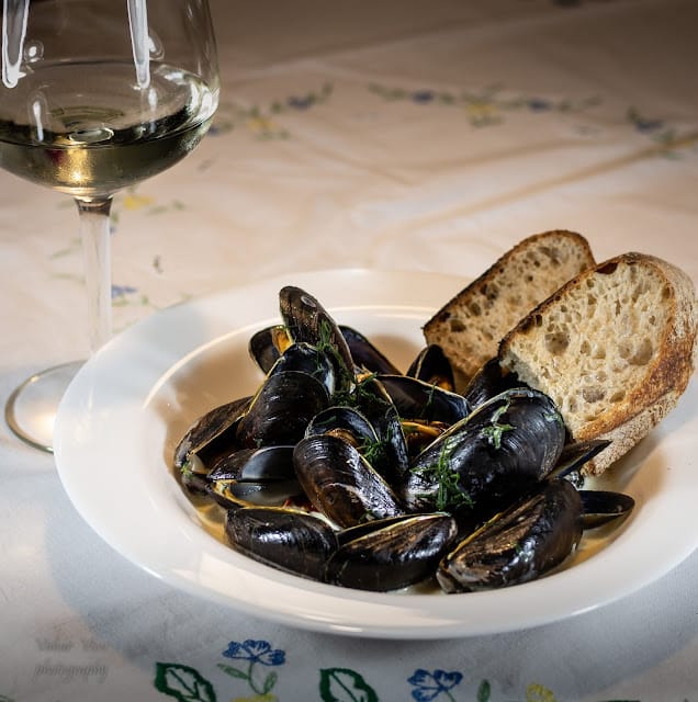 In English Väga maitsev toit, mis sobib imehästi vihmasesse õhtusse. Mõnusad mereannid maitsevad alati imeliselt.Koostisosad1 kg sinimerekarpe2 šalottsibulat25 g juursellerit3 suuremat küüslauguküünt1 tl tšillihelbeid15 g