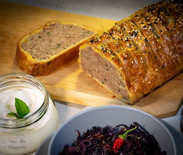 See on mõnus ja maitsekas hakkliharoog, mis näeb välja pisut põnevam ja maitseb veidi jõuluselt. Koostisosad:500 g kodust kotletiseguTäidis  200 g hapukapsast Katteks  2 spl