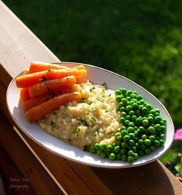 Toskaana toidureisi retsept nr. 25 Mõnus värske ja maitsev risootto, mida lihtsalt peab proovima. Retsept on 4-le. Koostisosad: 100 g rohelisi herneid, värsked, puhastatud 500