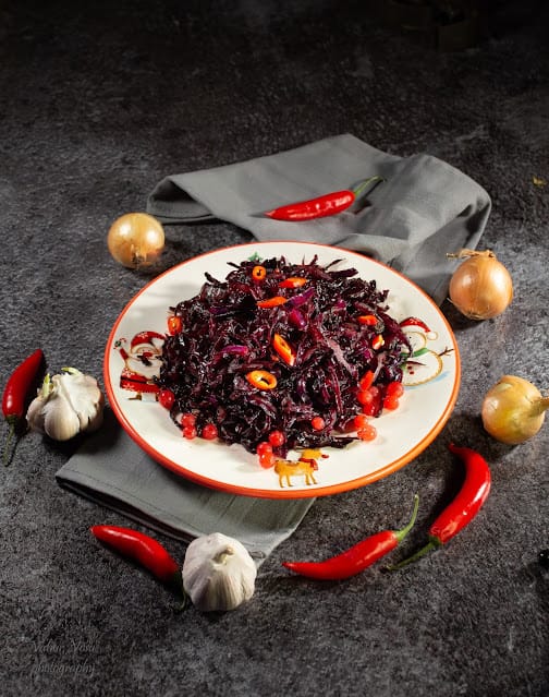 Selle retsepti jaoks sain inspiratsiooni Taanist. Originaalis on selles retseptis kasutatud punase sõstra mahla aga asendasin selle musta sõstra toormoosiga. Must sõstar koos punase veiniäädikaga