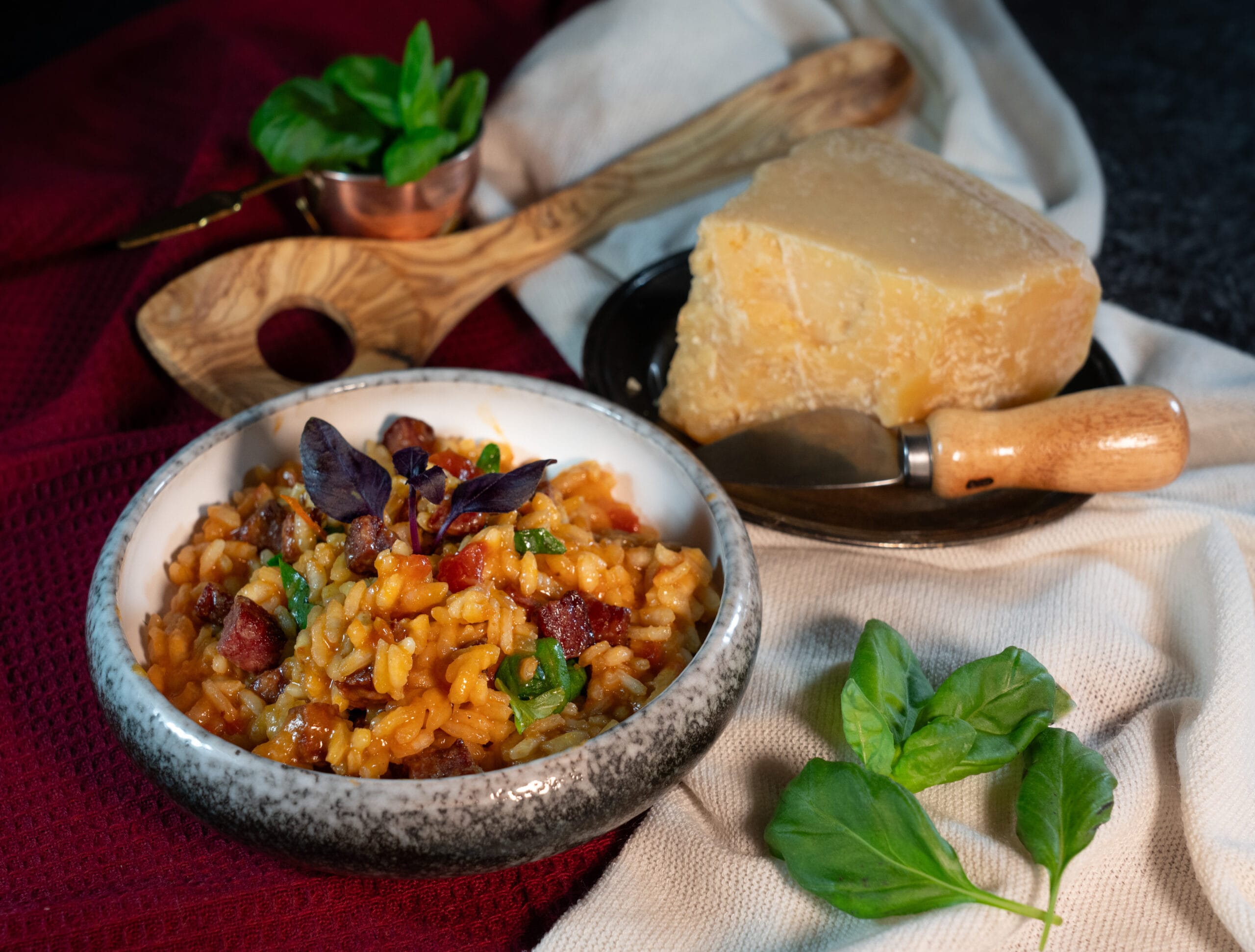 Veski Mati Pasta ja riisisegust valmistatud risotto laadne toit kuivatatud puravike ja Valio Royal Gouda Red juustuga.Kui riisist saab risottot ja odrakruubist saab orsottot, siis
