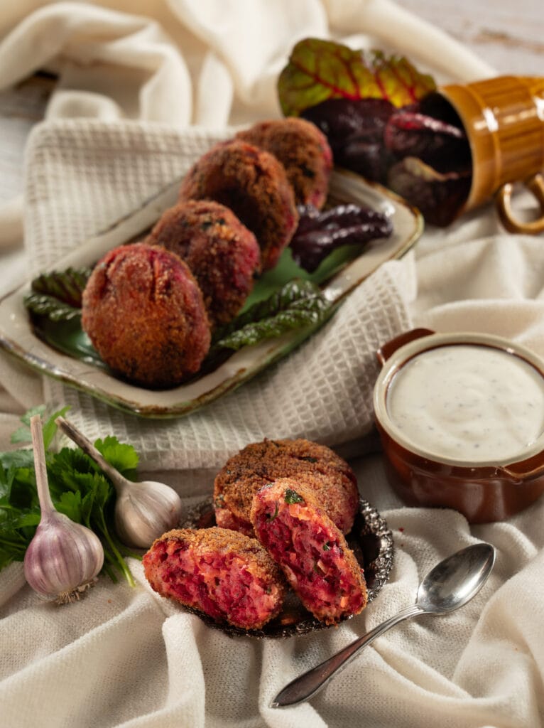 Peet ja porgand annavad kotlettidele kergelt magusa maitse ja teevad kotletid mõnusalt mahlaseks. Maitseks on lisatud veidi tšillihelbeid, et anda kotlettidele ka pisut vürtsikust. Kastmeks on kokku segatud hapukoor, sinep ja mesi.