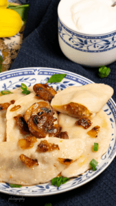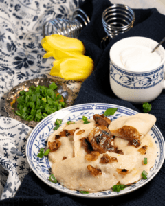Pane taldrikule vareenikud. Tõsta peale võis praetud sibulad ja seened ning raputa peale ka rohelist sibulat. Serveeri koos hapukoorega.