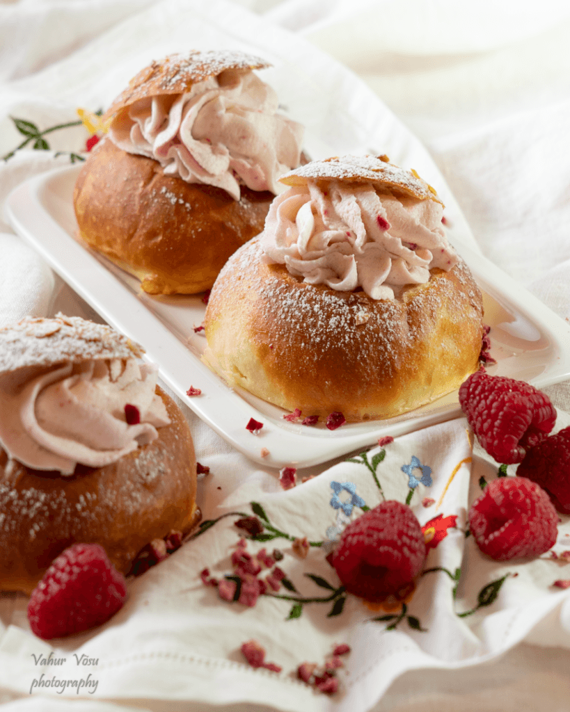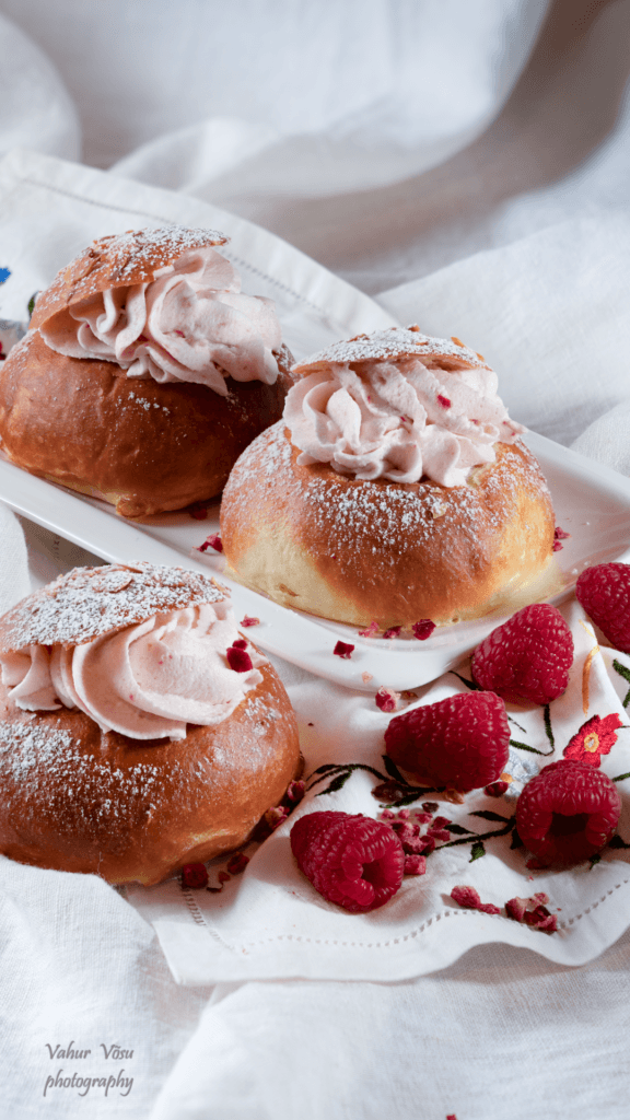 Vastlakuklid brioche saiast ja vaarikakreemiga